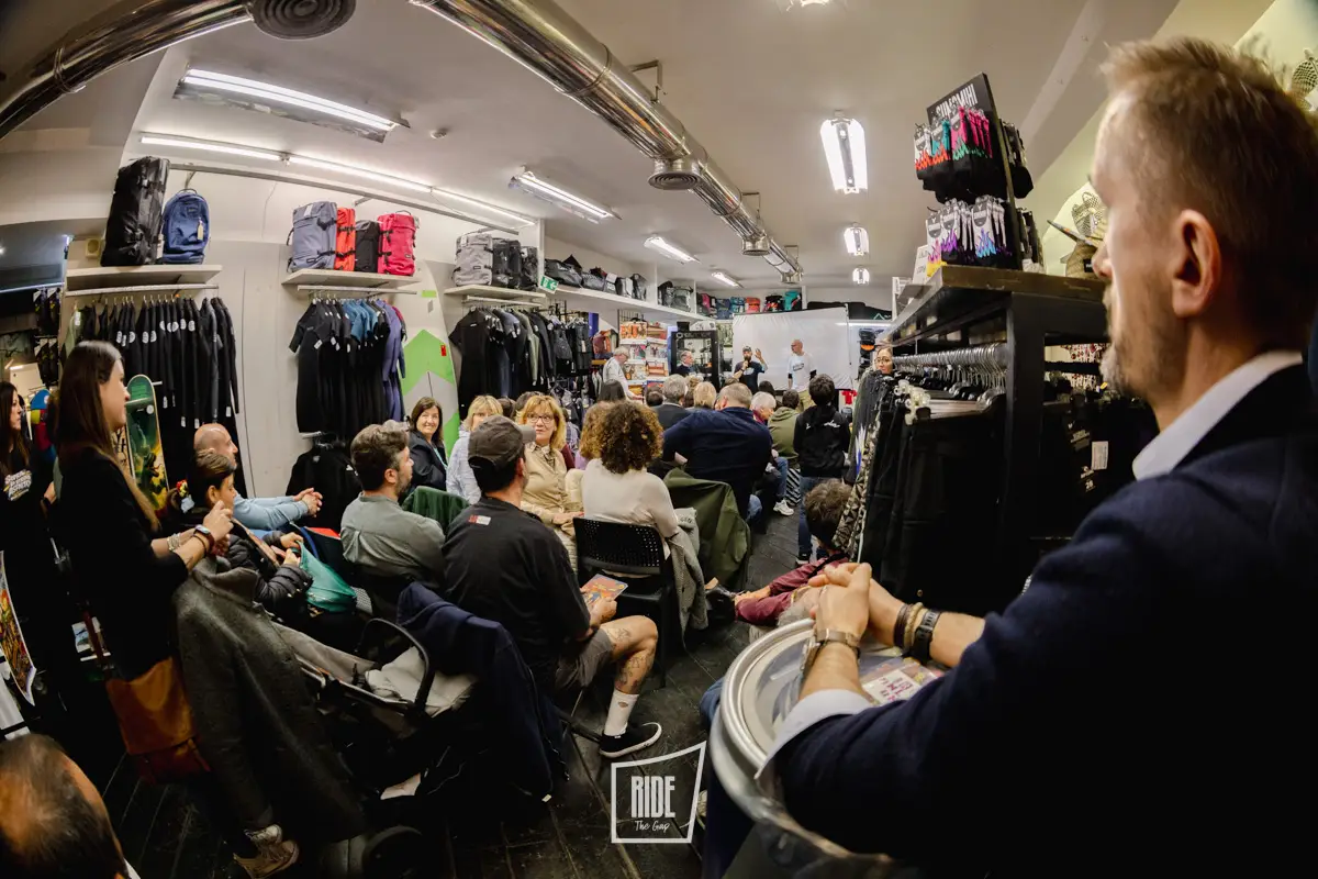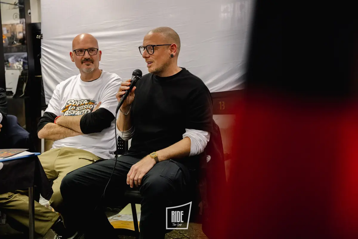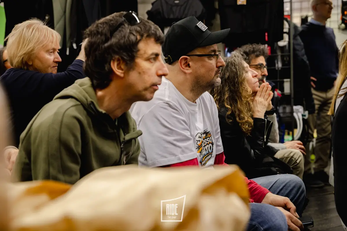 La presentazione si è sviluppata in modo fluido, alternando racconto e confronto con il pubblico. Fin dai primi momenti si percepiva un’energia particolare, con un pubblico ampio e trasversale composto da rider, appassionati e curiosi, attenti e coinvolti durante tutto l’incontro.